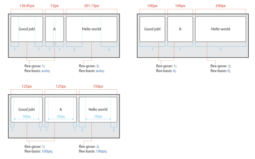 자식 요소의 grow값 / 자식 요소들의 grow값의 총합 의 비율로 공간을 가진다.