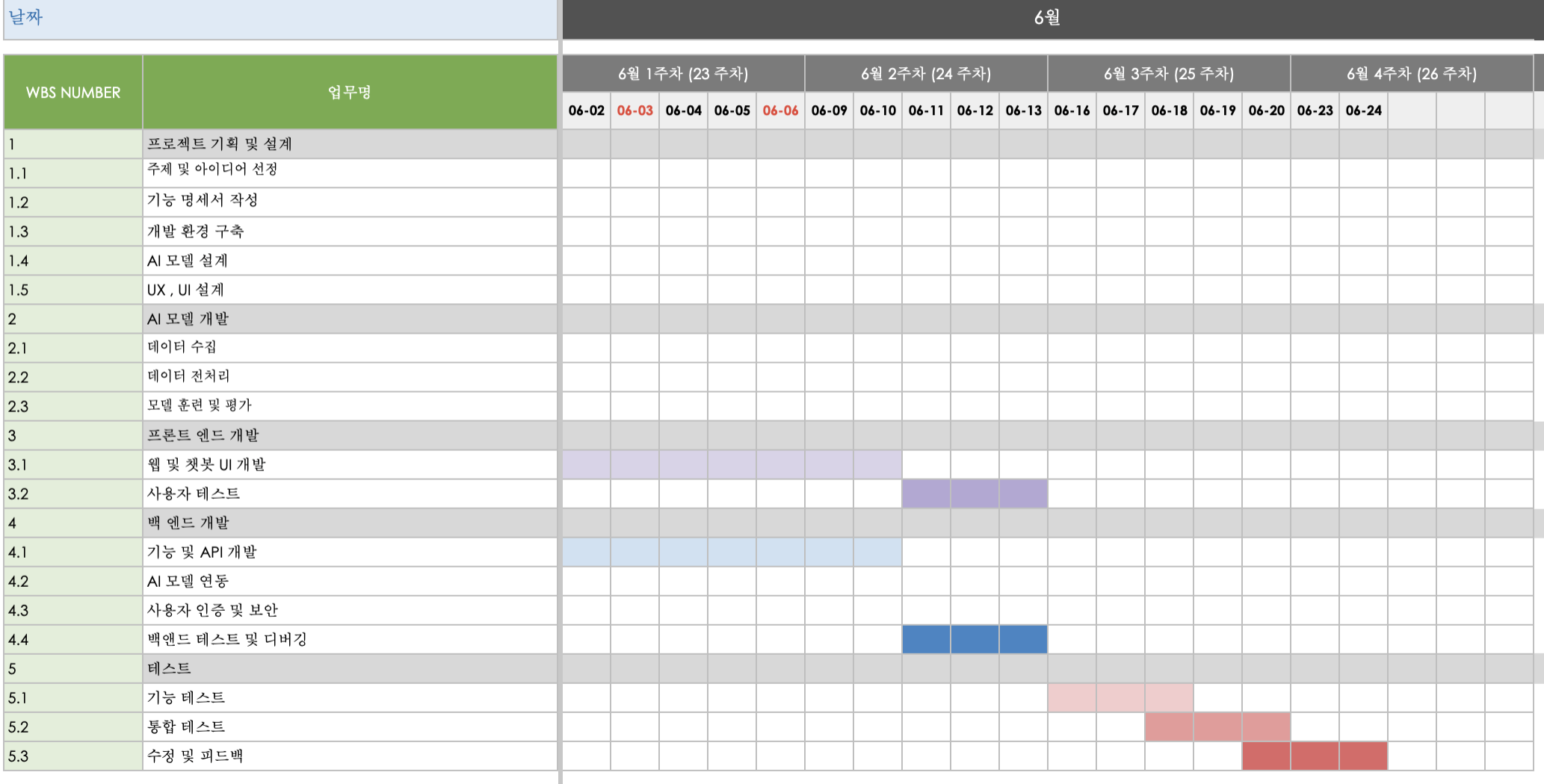계획한 일정은 위와 같지만, 6월 18일경에 20일까지 프로젝트를 마무리하라는 연락을 받았다.
