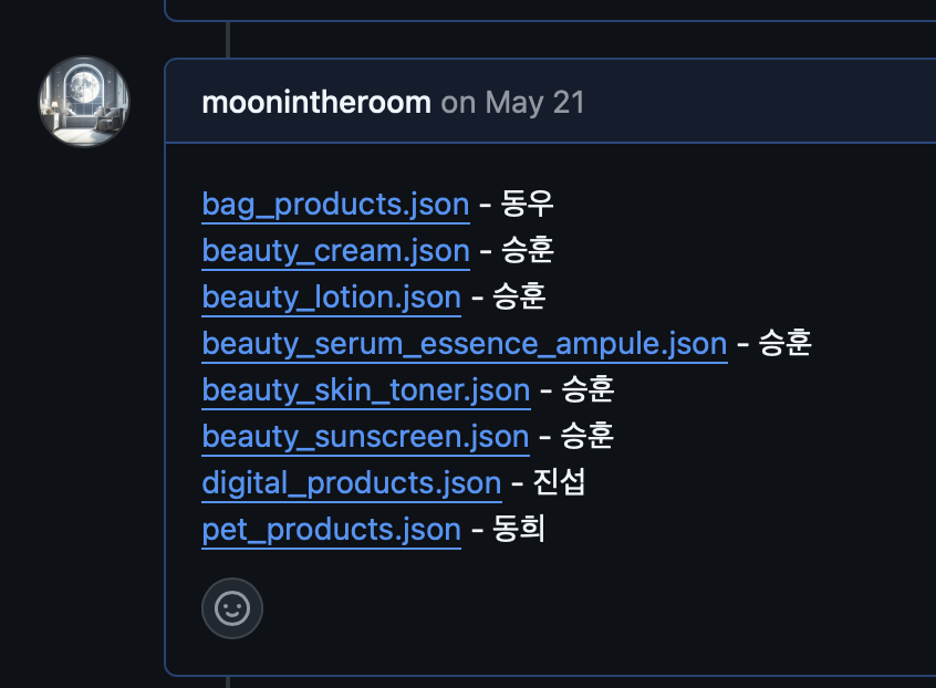 소분류 4개씩 선정해서 4명이서 각자 맡아서 크롤링 작업을 진행했다.