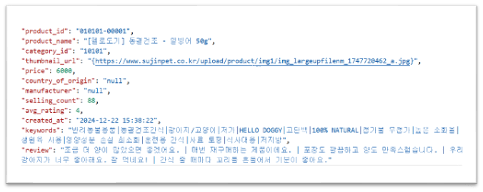 검색도 벡터서치로 이루어지며, 벡터 유사도가 높은 순서대로 제품이 정렬된다.