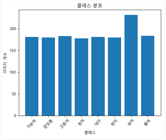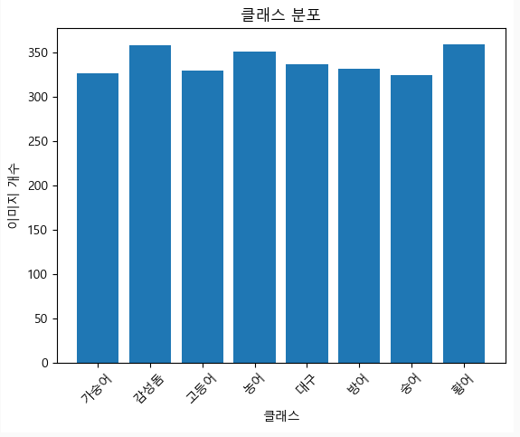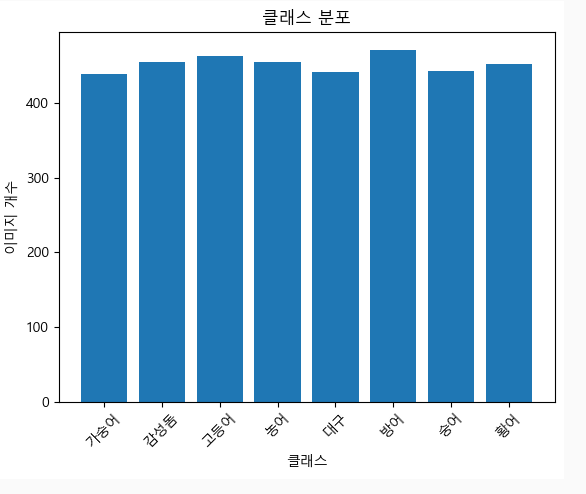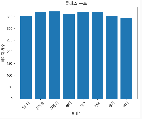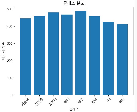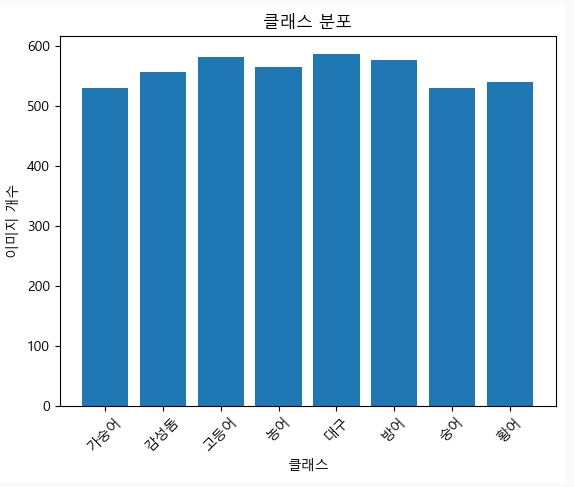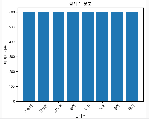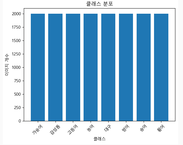 2m 36s 만에 8개의 어종 각 클래스 당 600장 이미지 수집 완료 (총 4,800장)