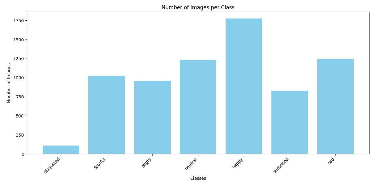 disgusted 클래스는 다른 클래스에 비해 데이터가 상대적으로 적기 때문에, 데이터 증강을 통해 클래스 불균형 문제를 완화하고자 함