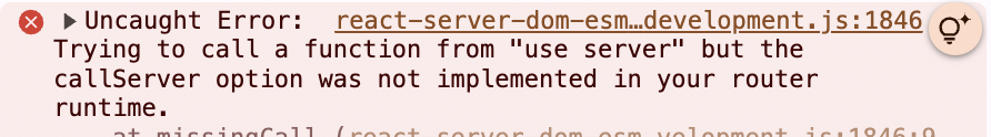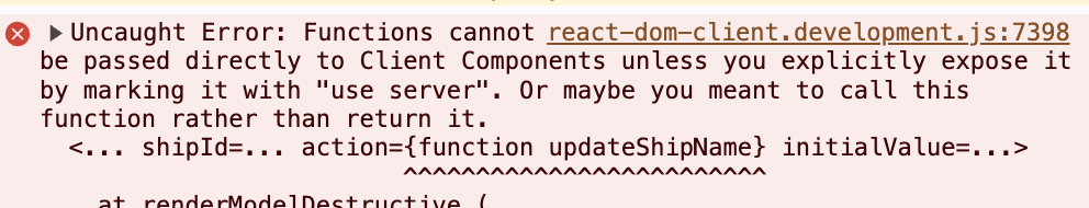 아니나 다를까 앱을 실행하면 클라이언트 에러가 발생하는데, use server