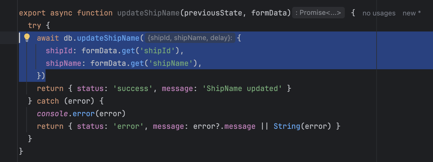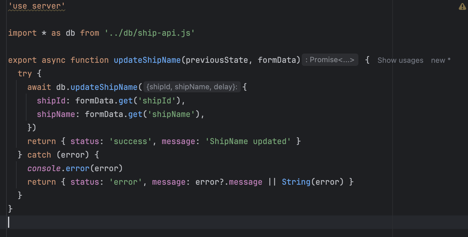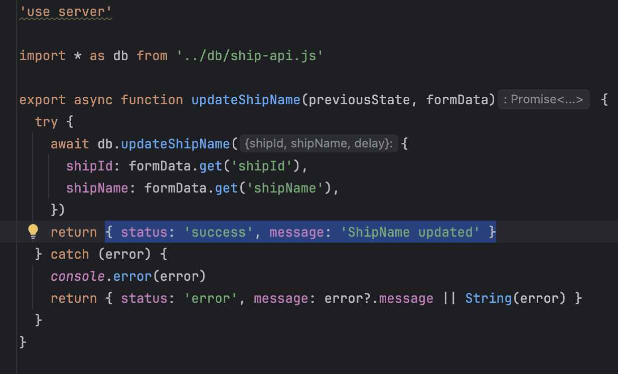 은 서버 함수로써 DB에 직접 접근하여 ship name을 변경한다. updateShipName