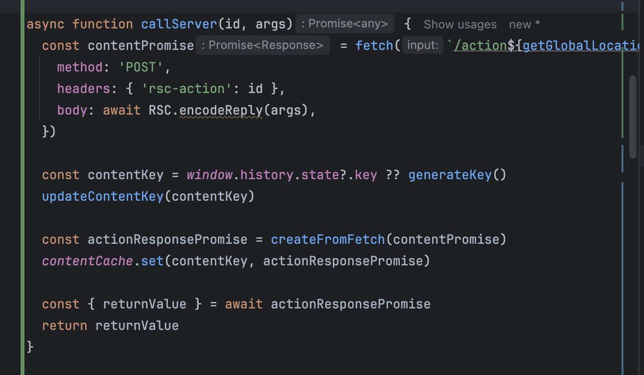이전 편에서 클라이언트 컴포넌트가 RSC Payload에 참조로 어떻게 추가되었는지 생각해보면, typeof