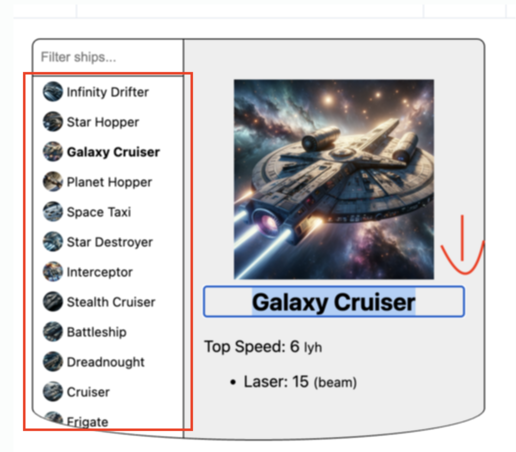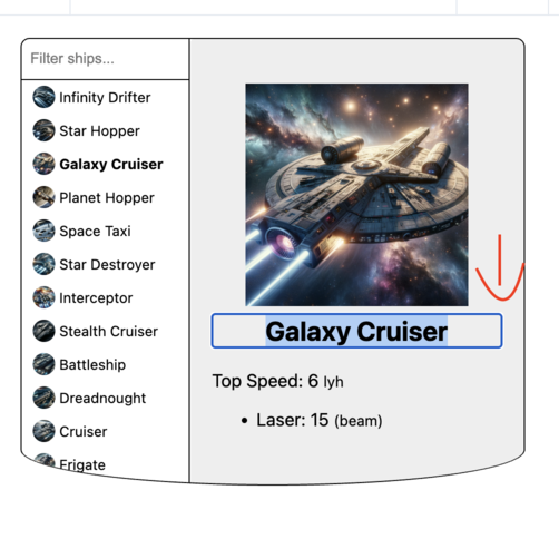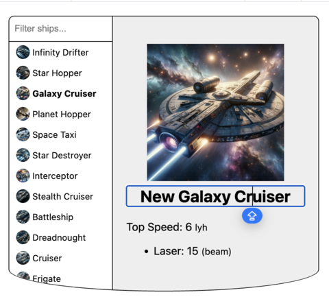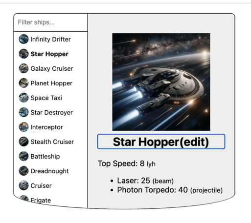 의 우주선 데이터를 편집할 수 있는 클라이언트 컴포넌트다.