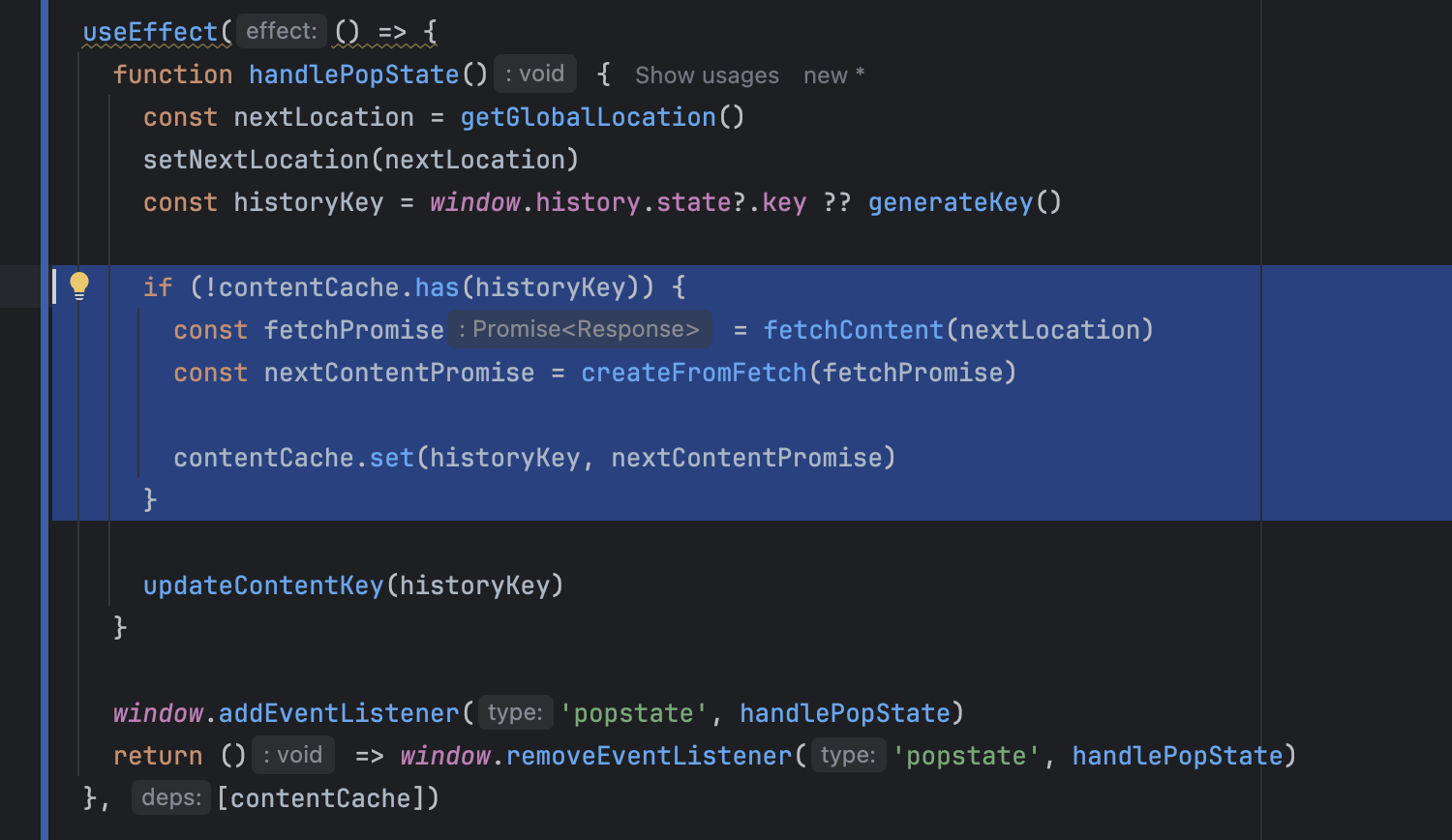 앞서 말했던, content 캐시는 즉각 업데이트하고 content 키는 프로미스가 promise가 끝나고 업데이트 해야 한다와 비슷한 맥락이다.