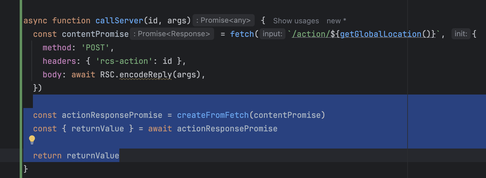 는 RSC 스트림을 파싱하는 함수이고 actionResponsePromise