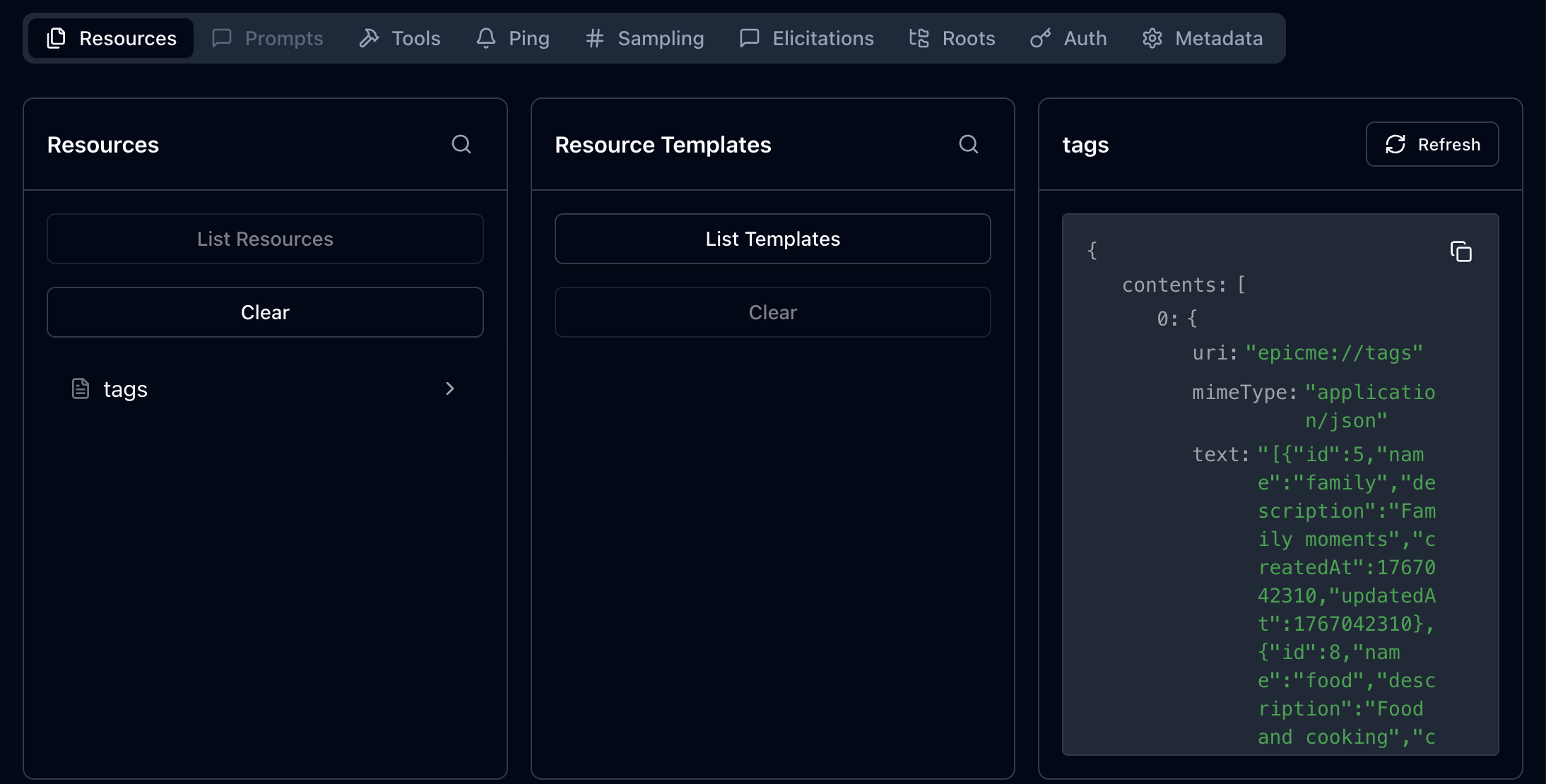 여기서 살펴볼 점은 result에 content 내부에"uri": "taco://menu/items/... taco라고 되어 있는 스킴이다. MCP에서 스킴은 중요한 건 일관성이다. 특정 스킴을 이해하는 클라이언트와 통합하는 상황이 아니라면, 스킴 자체가 무엇인지는 큰 문제가 아니다. 중요한 것은