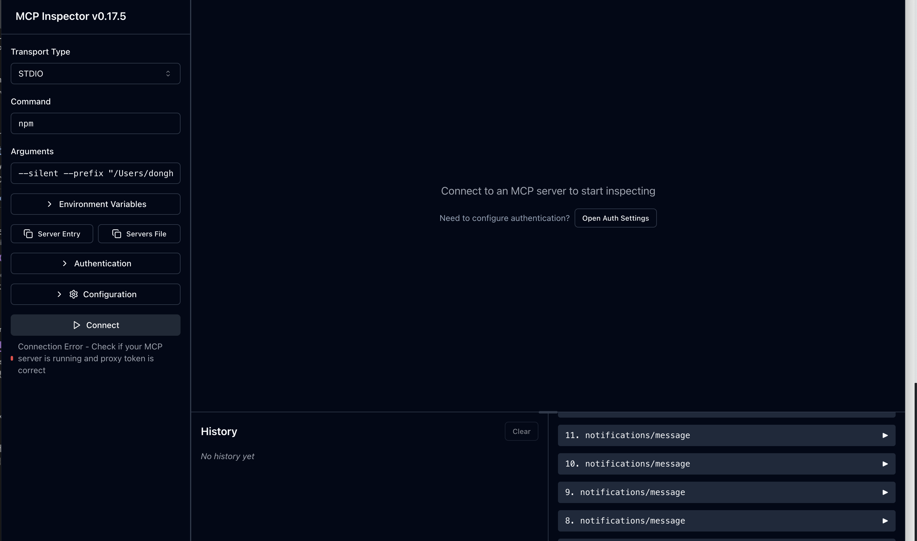 우리가 만들 건 MCP 서버다. 그렇다면 서버가 제대로 동작하는지 어떻게 확인할 것인가. 바로 MCP Inspector가 필요하다