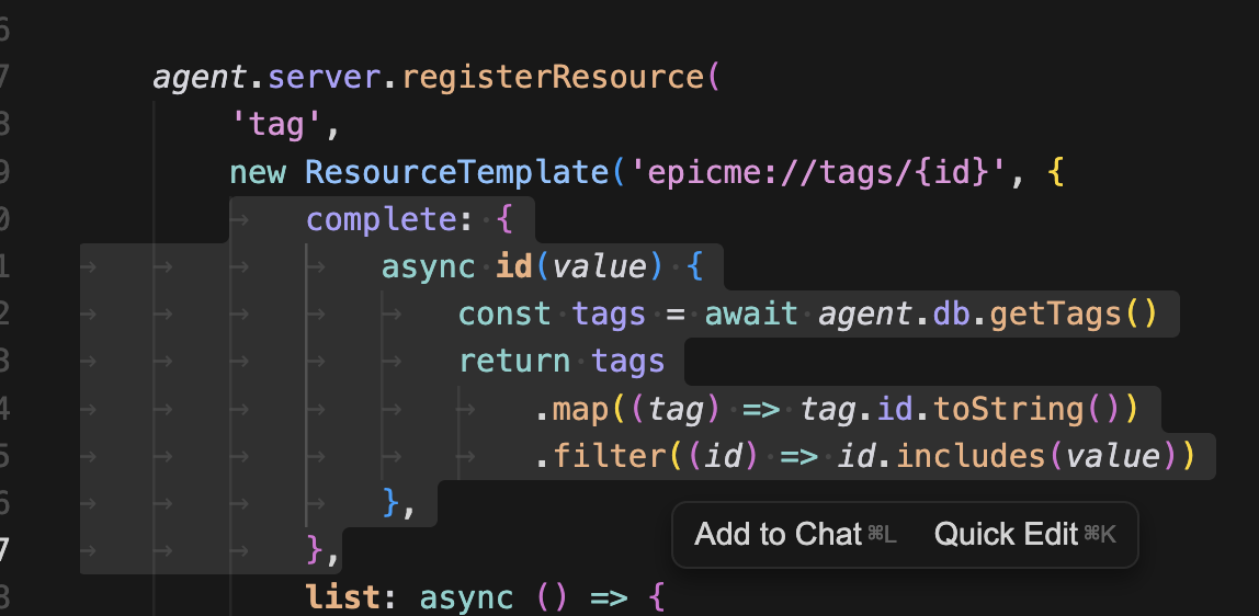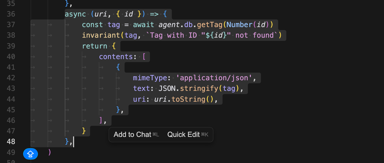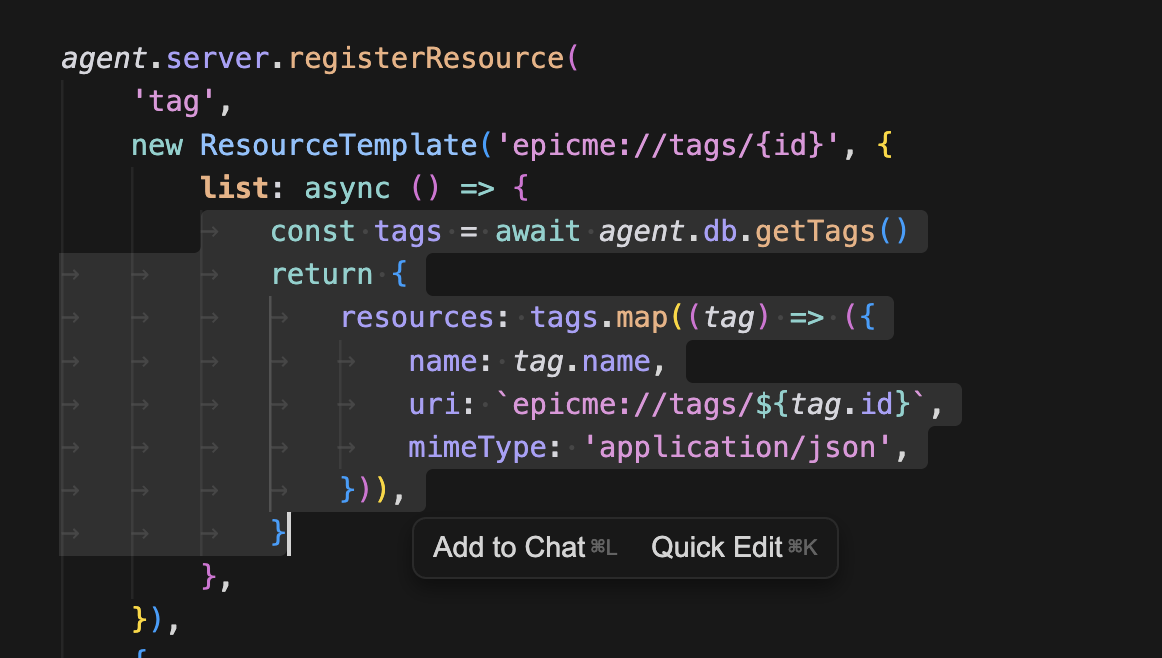 사용자가 만약 아주 특정한 리소스 선택하려고 할 때를 상상해보자. 예를 들어 index.ts를 편집하려고 했을 때 프로젝트에 index.ts 파일이 수 천개 있을 수가 있다. 그래서 LLM에서 어느 index.ts를 말하는지 정확히 지정해줘야 한다.