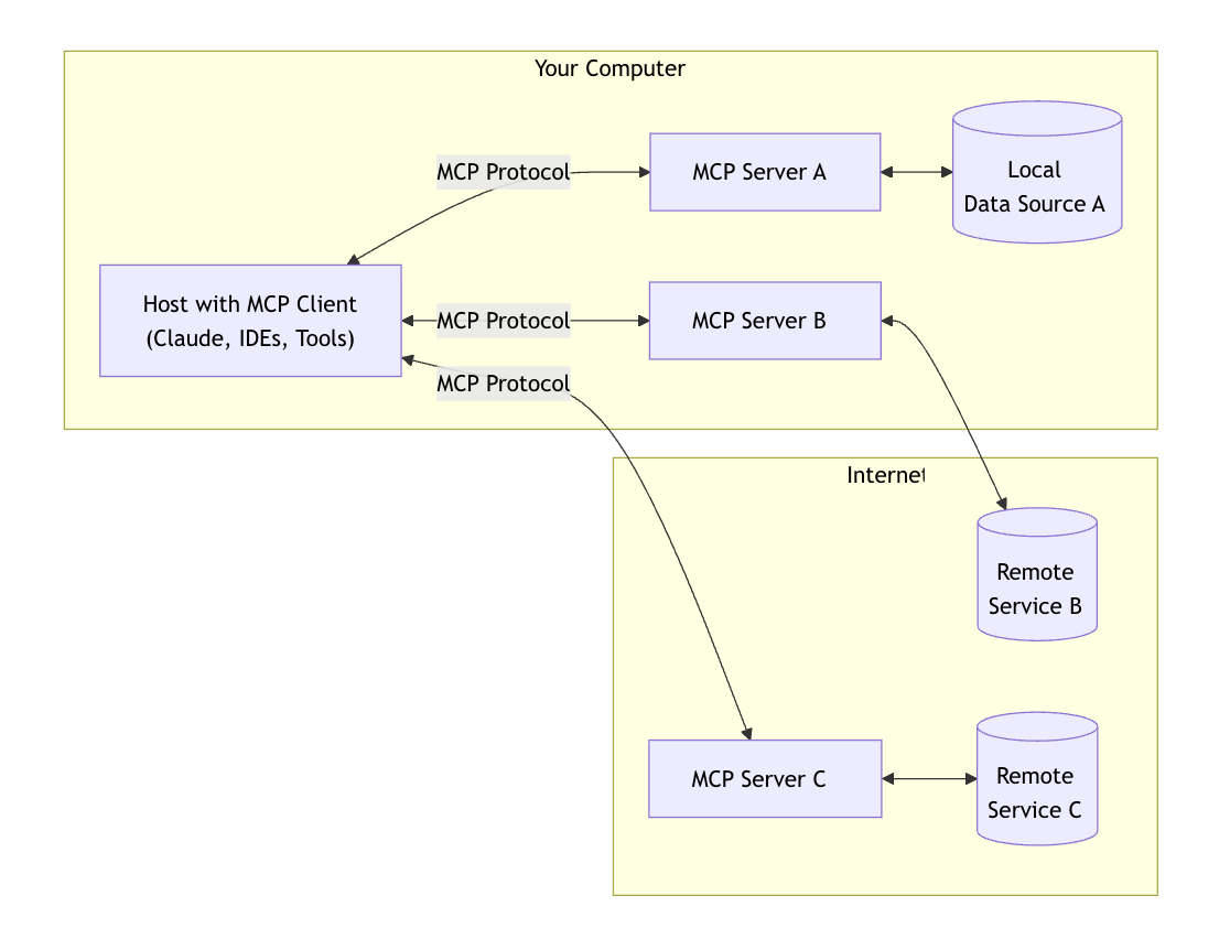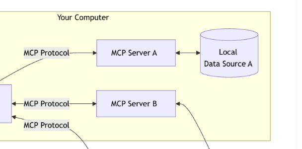 여기서 USB 포트인 MCP 인터페이스를 이용하여 MCP 서버와 연결한다. 실제 기능을 제공하는 백엔드다. 이를통해 로컬 파일이나 데이터에 접근하게 된다.