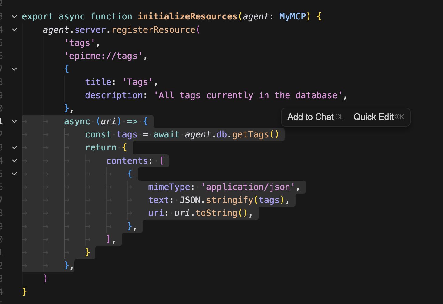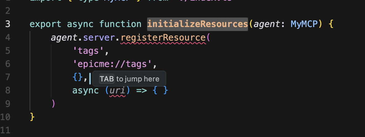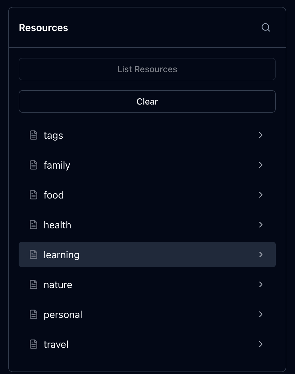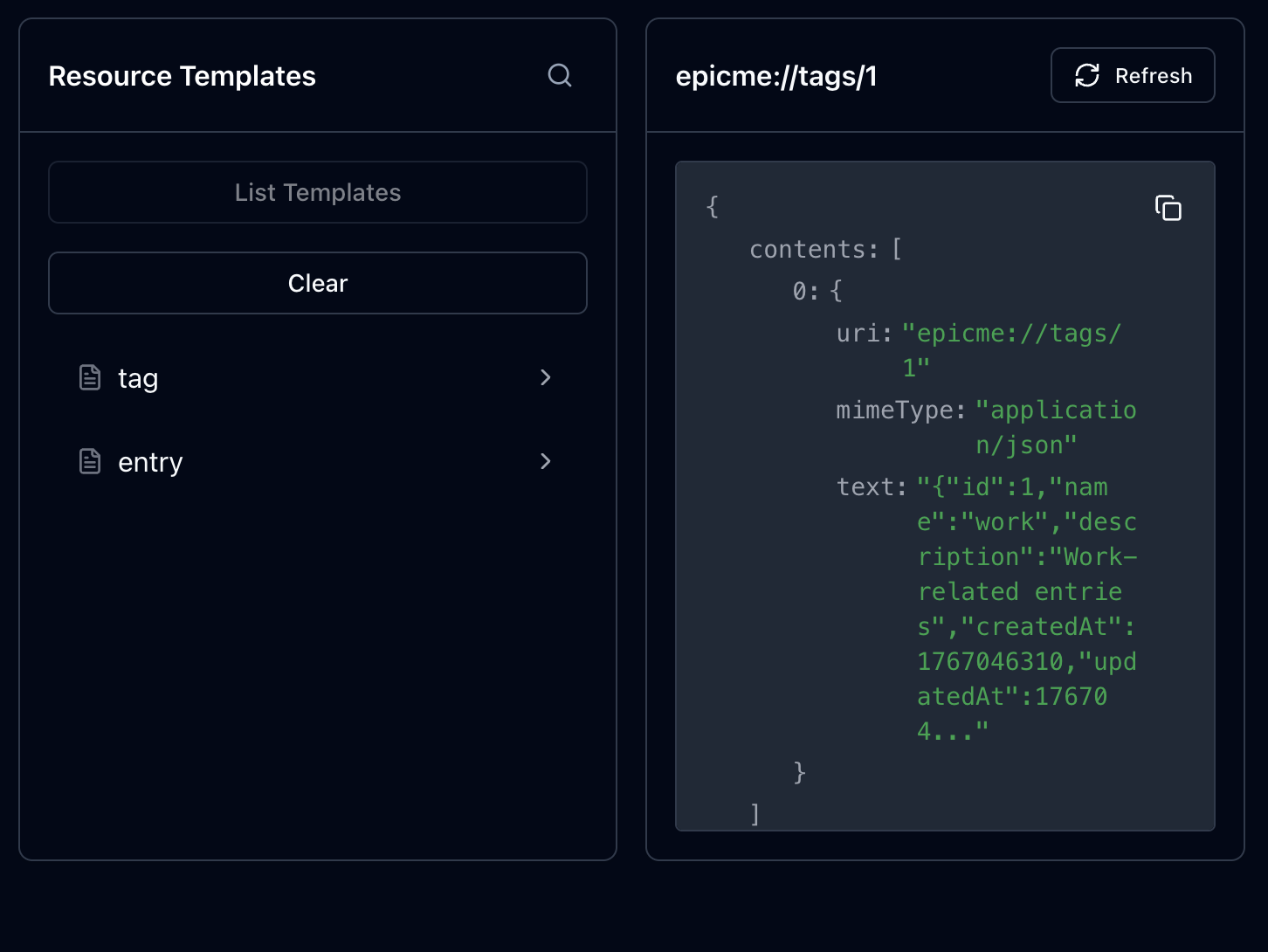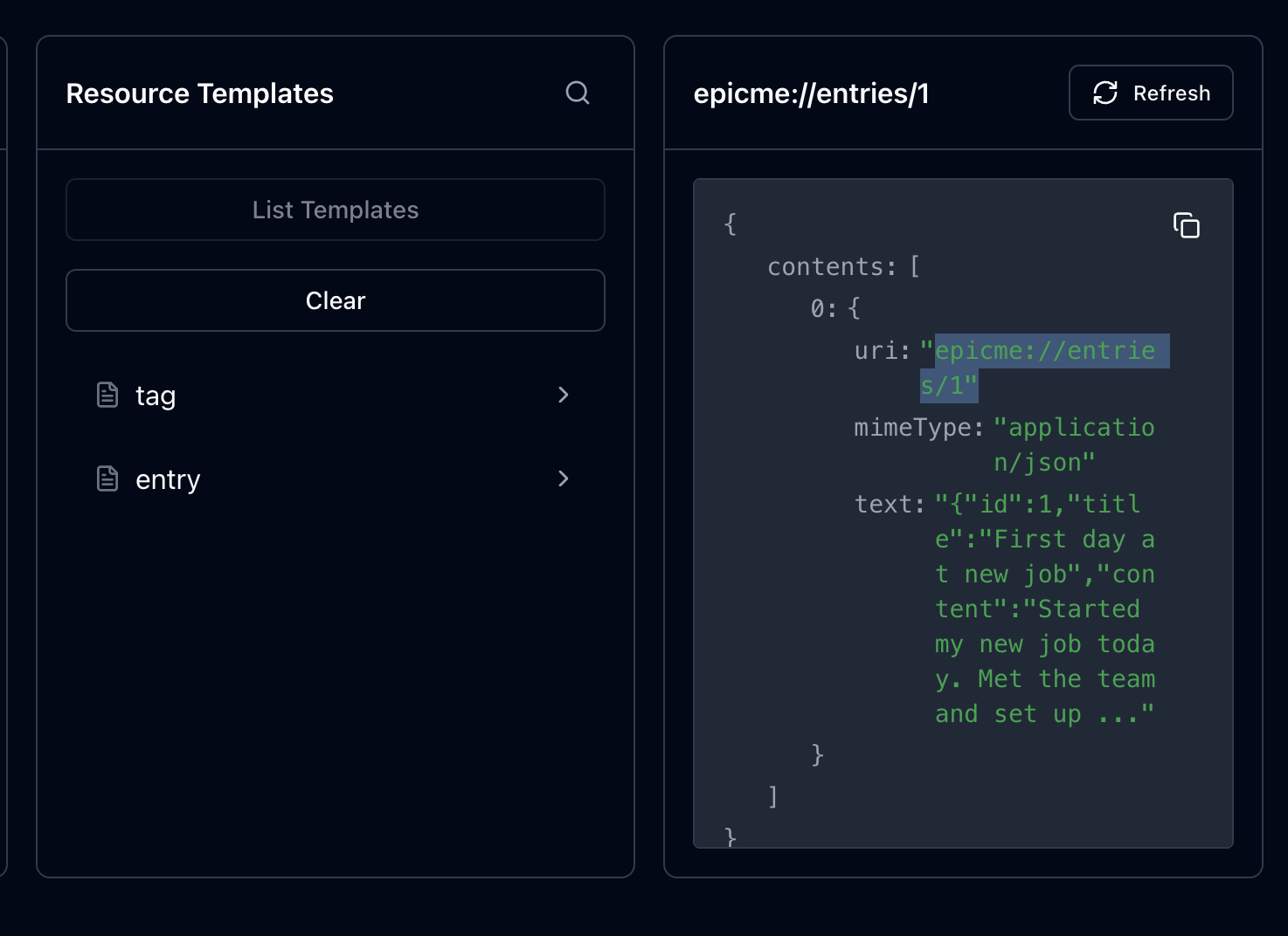 이때 Resource Template을 사용할 수 있다. 모든 리소스를 하나하나 registerResource로 등록하는 대신, 리소스의 Template을 만들어서 필요한 것만 가져오도록 하는 것이다.