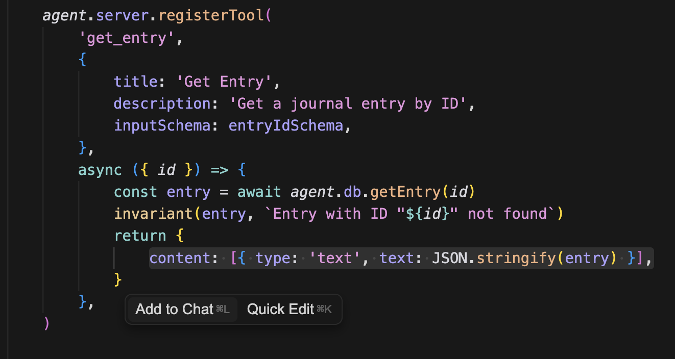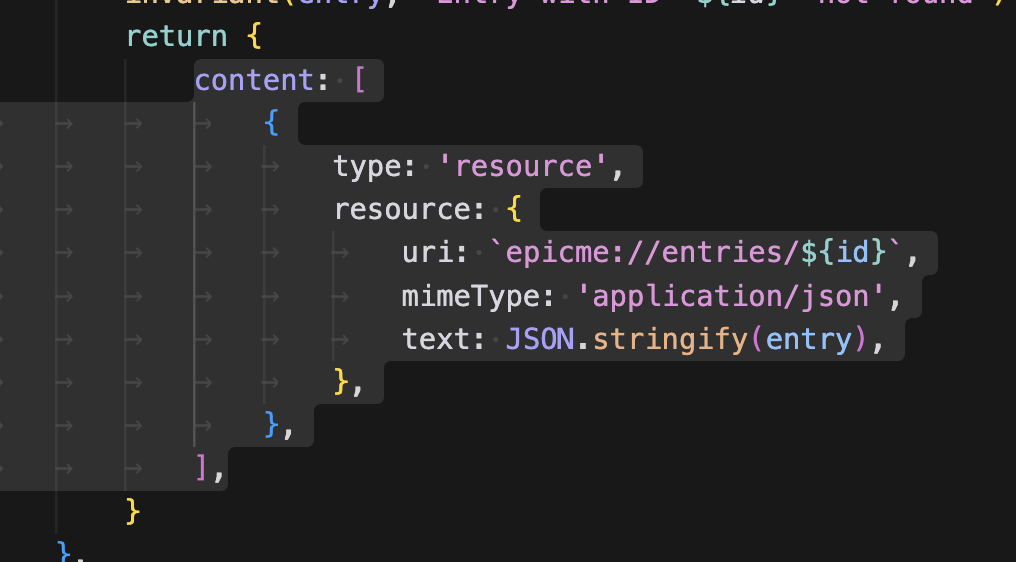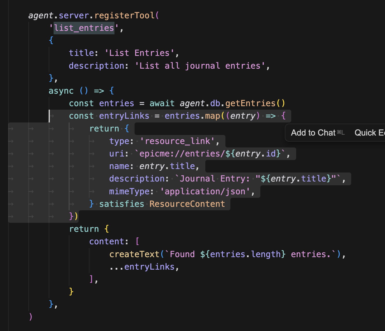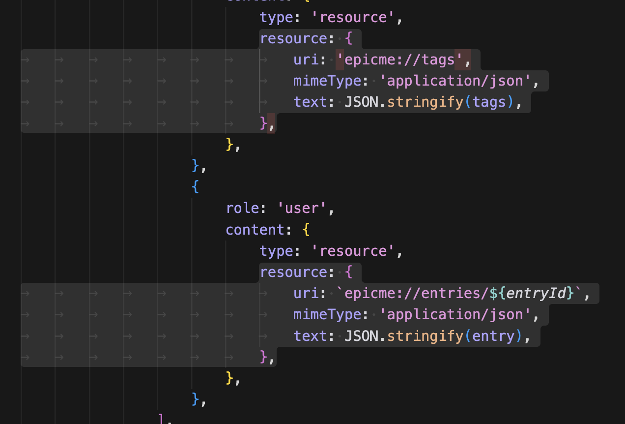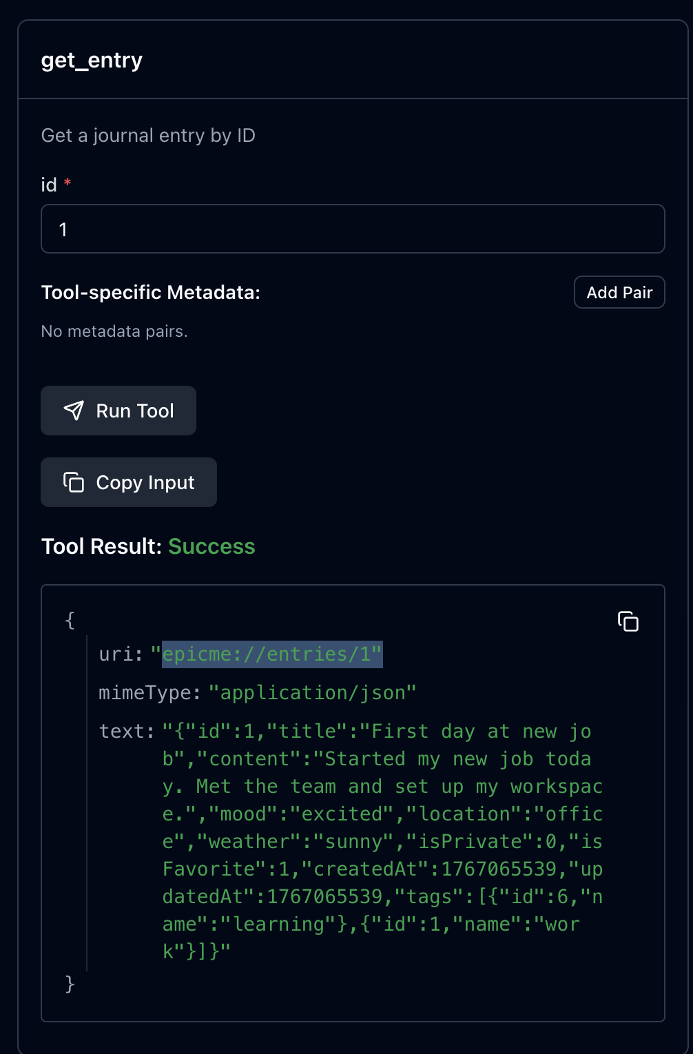 resource로 변경하고 리소스의 uri을 넣어준다. 이제 툴의 결과물은 단순한 JSON이 아니라epicme://entries/{id} 라는 리소스의 정식 표현이다.