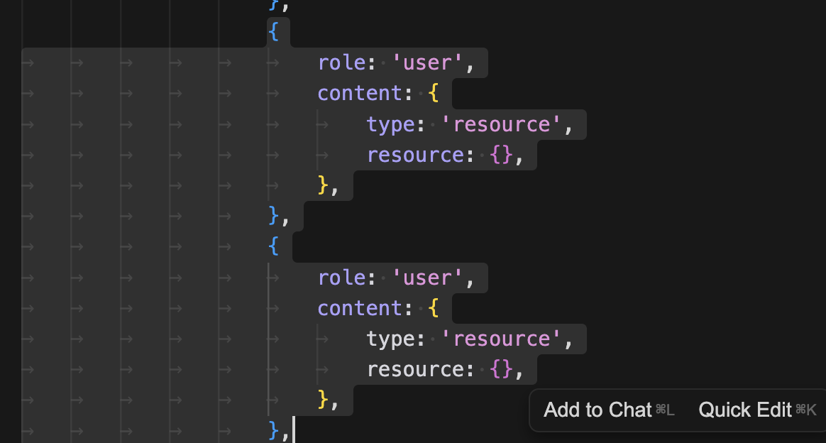 프롬프트와 리소스를 잘 가져온다! 메시지를 구성하는 순서는 원하는 작업을 말하고 컨텍스트를 전해주는 것이 좋다.