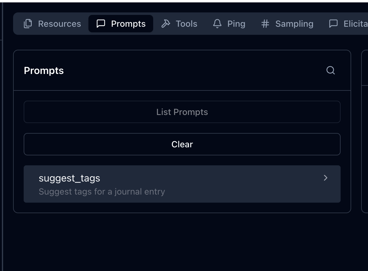 그렇기 때문에 좋은 프롬프트를 작성하는 법을 알 필요가 없기에, MCP는 서버가 프롬프트 템플릿을 기능처럼 제공한다. 사용자는 템플릿을 선택하고 필요한 인자만 채우면 된다.