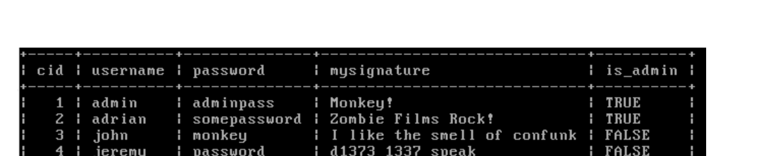 이러한 DB 구조를 URL에서 테스트해보면서 파악하고, UNION SELECT을 통해서 2, 3, 4 위치의 컬럼이 화면에 출력된다는 것을 알고 역으로 데이터베이스의 정보를 GET으로 가져와버린 것이다.