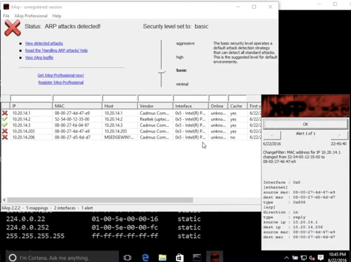 라우터 IP의 MAC 주소가 변경된 것이 감지되면 알려준다.