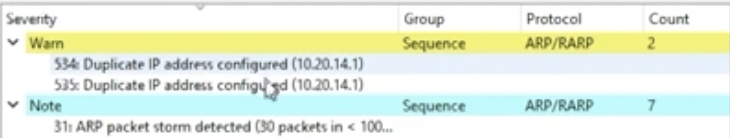 Duplicate IP address configured 경고가 나온다. (같은 IP에 두 개 이상 MAC)