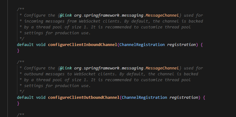 default void configureClientOutboundChannel(ChannelRegistration registration) {}