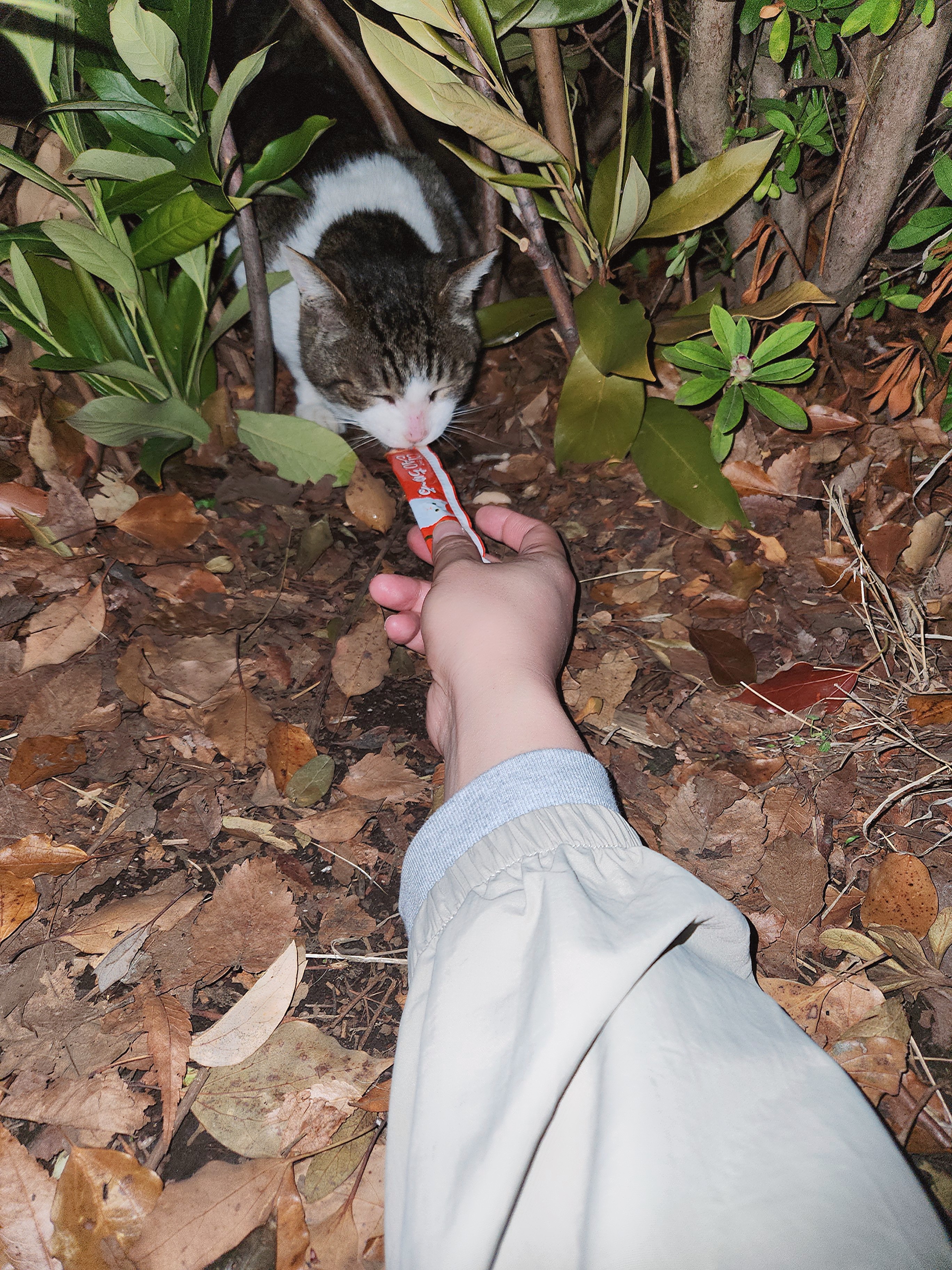 가끔 눈을 맞추면 슬금슬금 다가오기도 하는데, 이때 츄르를 꺼내서 살짝 내밀면…