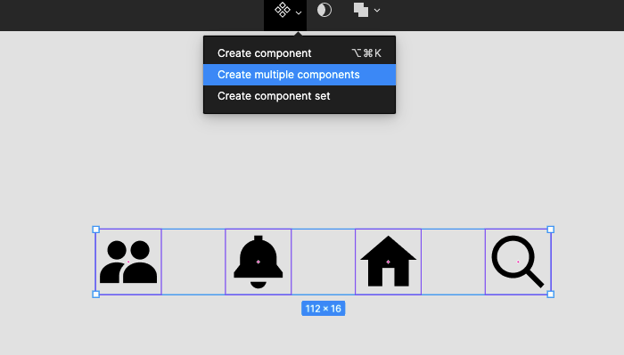 만약 각각의 nodeId로 위의 과정을 진행하게 되면 4번의 URL 연결이 필요합니다. 그러나 이 4개의 아이콘을 하나의 컴포넌트로 묶어서 해당 컴포넌트의 nodeId로 조회하면, 단 한 번의 URL 연결로 4개의 아이콘 정보를 얻을 수 있습니다.