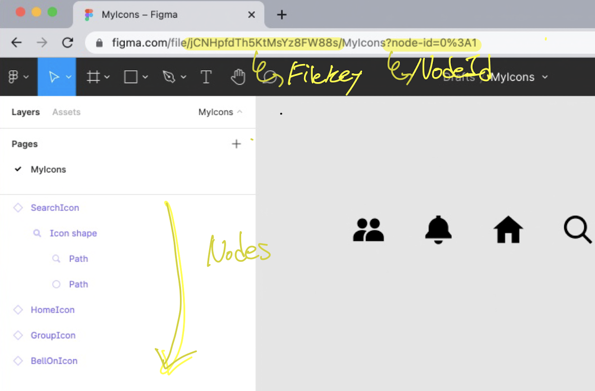 FileKey와 NodeId 값은 상단 이미지에서 보이듯이 URL에서 확인이 가능합니다.