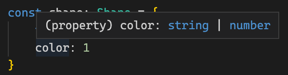 이 말은 즉, color에 number 타입의 값을 지정했음에도 불구하고 string | number로 추론된다는 것이다.
