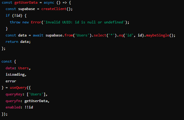 - enabled: !!id는 id가 유효할 때만 쿼리를 실행하도록 설정