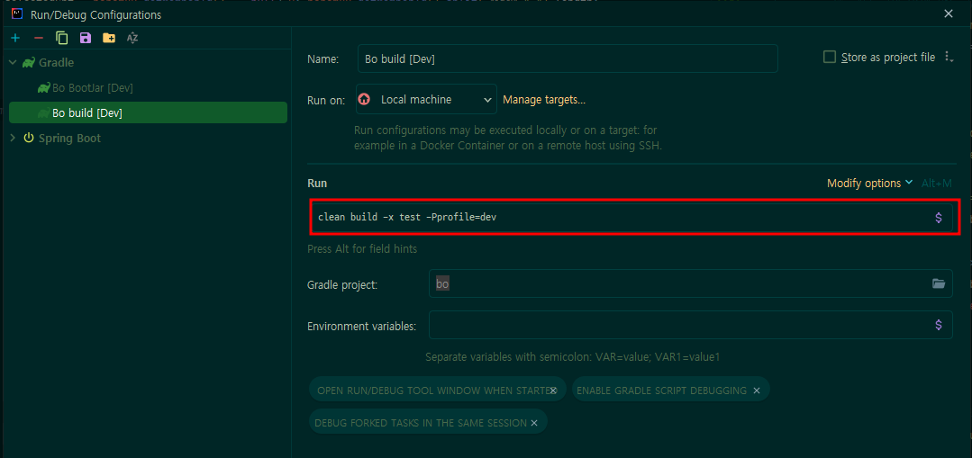 IntelliJ에서 Gradle로 빌드 진행 시 profile 설정