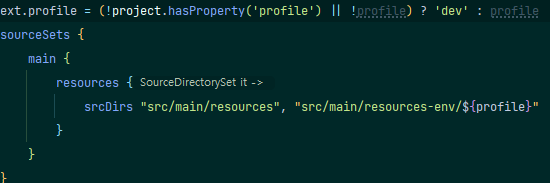 위에서 받아온 profile 매개변수 값은 build.gradle에 작성된