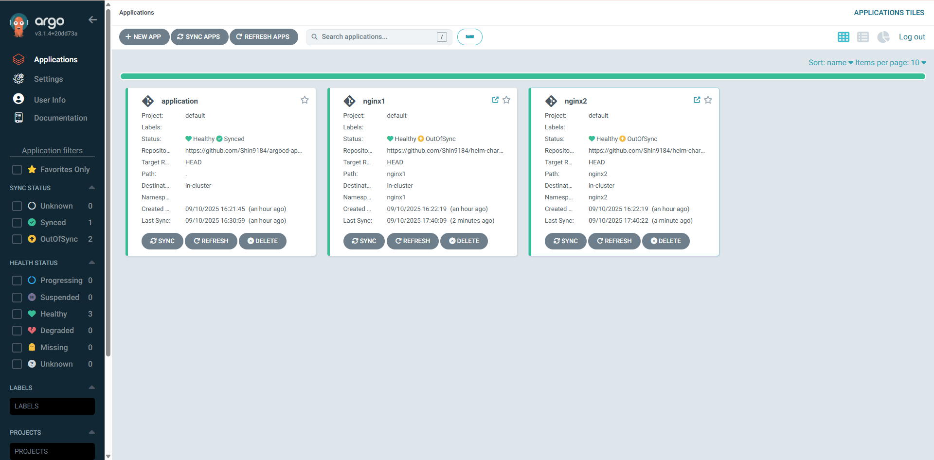 App of Apps 패턴은 단순히 애플리케이션을 배포하는 방법이 아니라, 쿠버네티스 애플리케이션 전체 수명 주기를 GitOps스럽게 관리할 수 있게 해주는 구조적 접근이다.