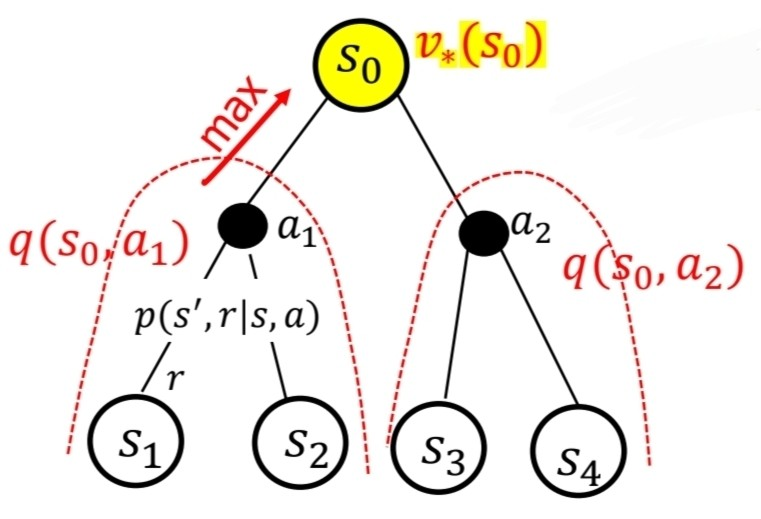 - State s에서 a를 선택했을 때, 받을 수 있는 return값을 최대가 되게끔 할때, Bellman Equation