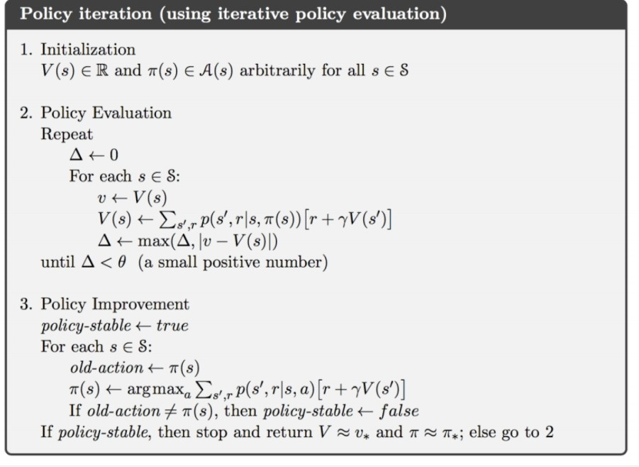 이 알고리즘을 살펴보면, policy에대한 evaluation이 모두 마친 이후에 imporvement를 진행하는 것을 알 수 있다.