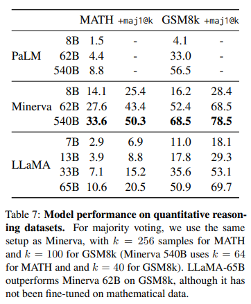 Math 데이터에 대해서는 Minerva보다 훨씬 낮은 성능을 보이는 것을 알 수 있다.