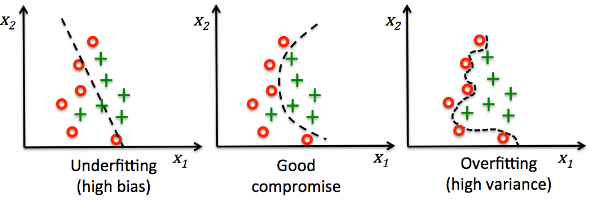 첫번째 예시는 너무 구분을 못하고 마지막 예시는 너무 상세하게 구분해서 새로운 데이터에 좋은 성능을 내지 못한다. 따라서 적당한 Bias와 Variance를 갖는 모델을 구축하는 것이 목표이다. 이렇게 overfitting 되는 상황을 해결하기 위해 다양한 방법이 있다.