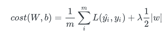 L2 regularization은 loss function에서 가중치의 제곱의 합을 더해주는 형태라서 weight의 크기에 따라 weight값이 큰 값을 더 빠르게 감소 시키는 weight decay기법이다. weight의 크기에 따라 페널티의 정도가 바뀌는 L2는 L1보다 더 효과가 좋다. 를 통해서 규제하는 정도를 조절가능하다. outlier에 대해 L1보다 더 민감하게 반응하지만, weight의 크기만큼 페널티를 줄 수 있어 일반적으로 더 좋은 학습 효과를 얻는다.