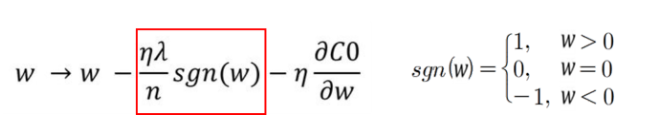 L1 regularization은 loss function에서 가중치의 절댓값의 합을 더하는 형태이기 때문에 미분했을 때의 weight의 크게 상관없이 부호로 상수값을 빼거나 더해주기 때문에, 특정 weight을 0으로 만들 수 있다. 즉 feature selection이 가능하다. 특정 weight만 사용할 수 있다.