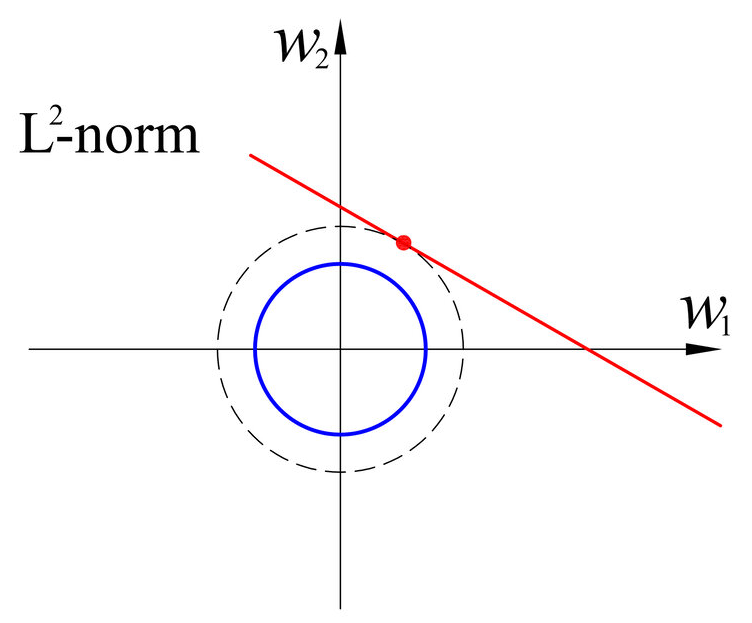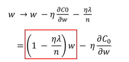 모델이 너무 train data에 잘 학습하지않게끔, Loss 함수에 규제 함수(Regularization term)을 추가해 학습시 손실함수가 너무 작아져서 overfitting되는 것을 방지하는 기법으로 특정 weight에 너무 의존하지않고, 균등하게 weight를 반영할 수 있게끔 weight에 penalty를 주는 방법이다.