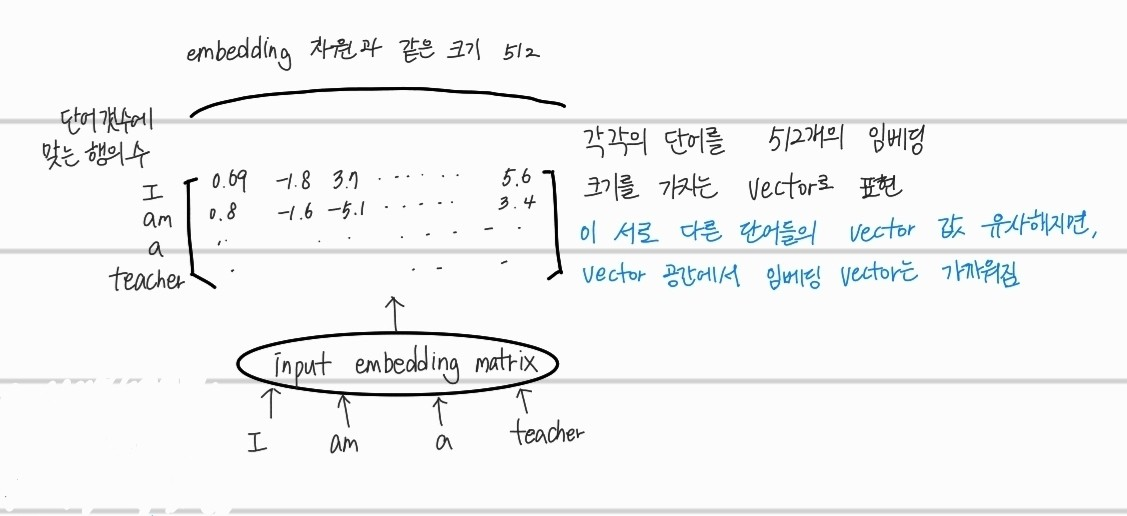 먼저 입력되는 inputs가 input embedding, positional encoding을 통해서 encoding된 sequence가 입력된다. 여기서 input embedding이 어떻게 이뤄지는지 알아보자