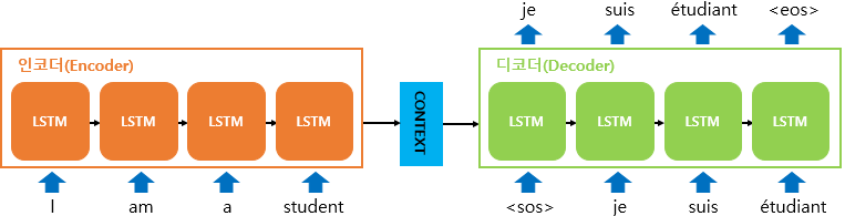 seq2seq 모델은 인코더-디코더 구조로 구성되어있다. 각각의 역할은 아래와 같다.