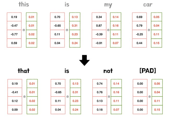 위의 사진을 보면, this와 that의 position embedding값은 모두 같은걸 알 수 있다.2) 너무 큰 값이면 안된다.