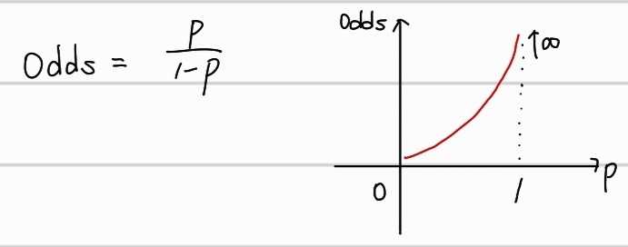 예를들어, 어떤 것이 일어날 확률을 0.8, 일어나지 않을 확률을 0.2라 했을 때, Odds값은 4가 된다.