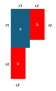 이해를 하기 편하게 a도형의 높이와 너비는 r1,c1 그리고 b도형의 높이와 너비는 r2,c2로 설정하고 서로 다른 값이라고 해보자.