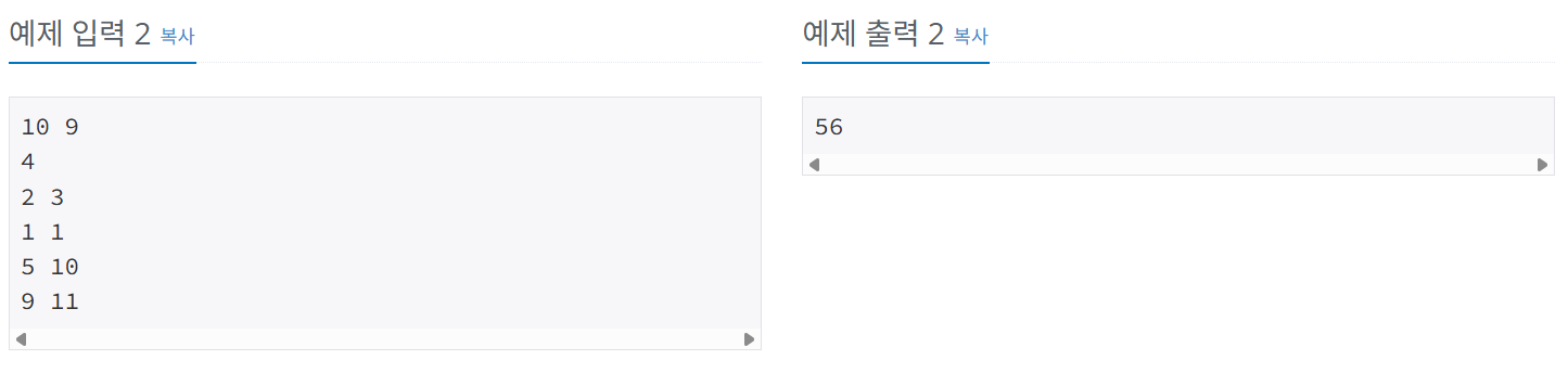 위의 예시의 경우 가 된다. 당연히 순서 상관없이 2개를 선택하면 되기 때문이다. 그리고 각 스티커의 높이와 너비가 주어졌다.