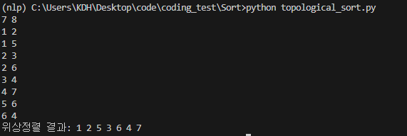 아래는 위상 정렬을 구현한 파이썬 코드이다.