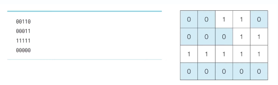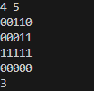 N x M 크기의 얼음 틀이 있다. 구멍이 뚫려 있는 부분은 0, 칸막이가 존재하는 부분은 1로 표시된다. 구멍이 뚫려 있는 부분끼리 상, 하, 좌, 우로 붙어있는 경우 서로 연결되어있는 것으로 간주한다. 이때 얼음 틀의 모양이 주어졌을 떄 생성되는 총 아이스크림의 개수를 구하는 프로그램을 작성하시오. 다음의 4 x 5 얼음틀 예시에서는 아이스크림이 총 3개 생성된다.