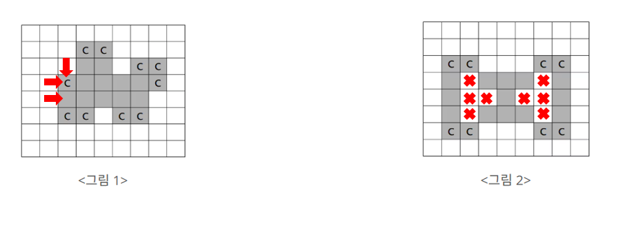 # 다음 좌표가 치즈라면 방문은 하지 않고, 공기로 부터 몇번 접근 가능한지 count해줌