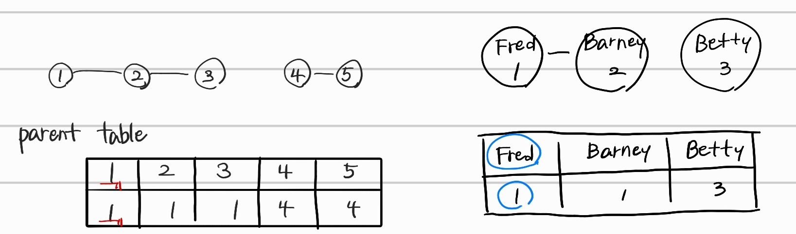 따라서 union 연산을 실행할 때 뒤에 나오는 노드가 무조건 더 하위 노드인 것으로 구현할 수 있다.