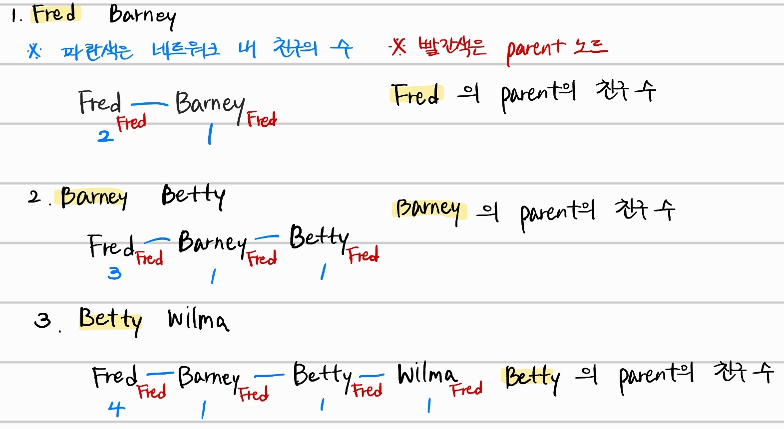 관계가 추가될때마다 union과정에서 root노드에 "네트워크 내 사람 수"를 더해주는 것을 확인할 수 있다.